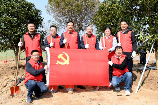 活動(dòng)現(xiàn)場(chǎng)黨旗飄揚(yáng),黨員干部熱情高漲,揮鍬鏟土、扶樹(shù)填土,每個(gè)環(huán)節(jié)都銜接有序、一絲不茍,呈現(xiàn)出一片熱火朝天的忙碌景象,展現(xiàn)了黨員干部積極向上的精神風(fēng)貌。在大家的共同努力下,一株株新栽樹(shù)苗昂然挺立,錯(cuò)落有致,煥發(fā)勃勃生機(jī),為園區(qū)增添一片綠色。