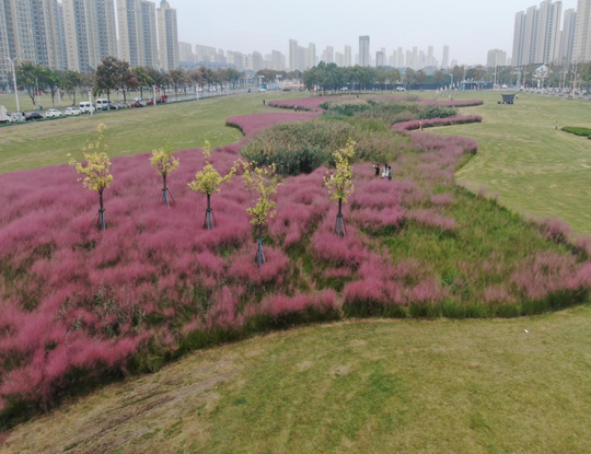 金秋十月,漫步在園區(qū)中央商務(wù)區(qū),映入眼簾的是如煙似霞的粉黛亂子草,與腳下綠意盎然、平整如毯的草坪相映成趣。這醉人的秋日美景,并非大自然的獨奏,而是園林養(yǎng)護工作者以“繡花功夫”進行精細化養(yǎng)護的成果。