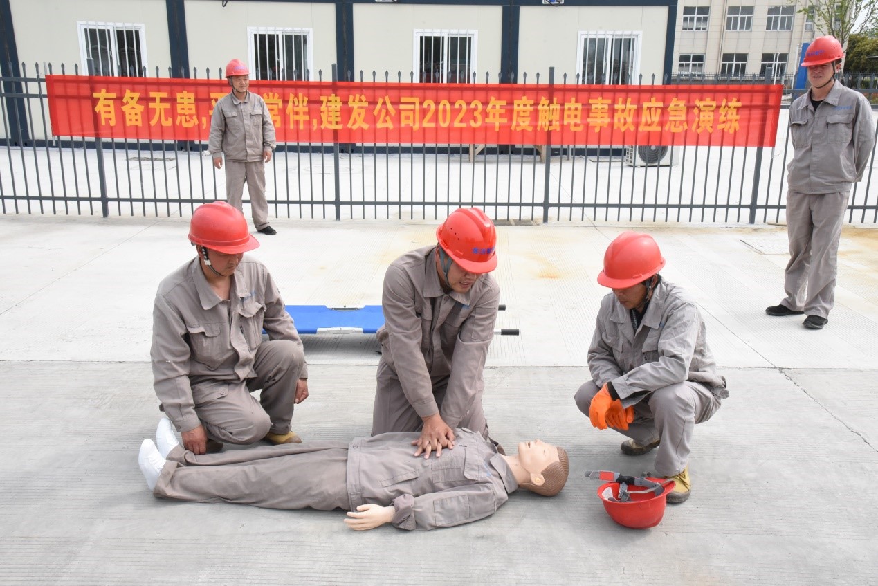 本次演練主要目的是熟悉人身觸電事故處理的流程,演練的重點(diǎn)突出在人身觸電后要及時(shí)斷開電源避免造成二次傷害和及時(shí)進(jìn)行現(xiàn)場(chǎng)急救等措施。演練以路燈維修人員在進(jìn)行配電柜內(nèi)部清潔時(shí)誤碰帶電部位發(fā)生人身觸電為主線,貫穿了從事故發(fā)生、現(xiàn)場(chǎng)救援、事故恢復(fù)、到預(yù)案關(guān)閉全過程。事故發(fā)生后,應(yīng)急指揮小組立即發(fā)布應(yīng)急預(yù)案啟動(dòng)信號(hào),并與就近醫(yī)療服務(wù)單位聯(lián)系,派人外出接應(yīng)急救車輛;同時(shí)現(xiàn)場(chǎng)救援組迅速切斷配電柜電源,將觸電人員轉(zhuǎn)運(yùn)至安全處進(jìn)行搶救;警戒組立即疏散無關(guān)人員,設(shè)置警戒線,維持現(xiàn)場(chǎng)秩序。參演人員密切配合,相互協(xié)助,嚴(yán)格按照演練要求和現(xiàn)場(chǎng)指揮命令有條不紊開展救援行動(dòng),圓滿完成了此次演練任務(wù)。