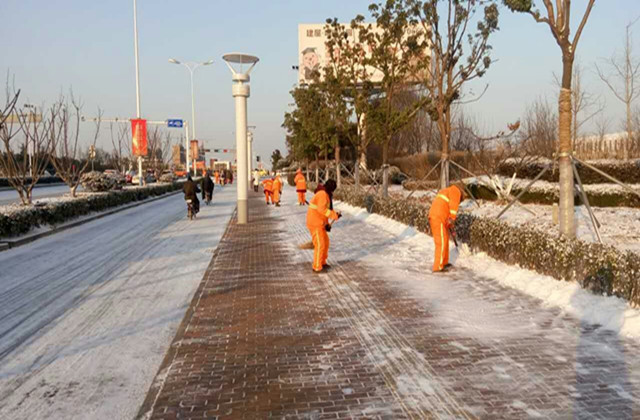 1月22日晚,蘇宿園區(qū)迎來新春首場大雪,降雪等級達到了中到大雪標準,為市民出行帶來了嚴重的安全隱患。建發(fā)公司市政物業(yè)部迅速啟動應急預案,連夜布置,全體市政人員、環(huán)衛(wèi)工人上街掃雪除冰,確保園區(qū)道路橋梁暢通。