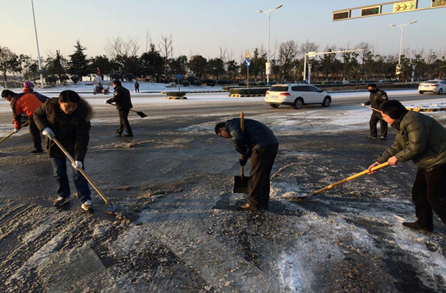 清晨6時,市政部工作人員和環(huán)衛(wèi)工人已經開始對轄區(qū)部分主要路段進行除雪除冰作業(yè)。在凜冽寒風中,他們不畏嚴寒,經過近3小時的清掃除冰,截至上午9時,青海湖西路、通達大道、紫金山路等主干道及蘇州公園人行道已基本完成路面積雪清掃。