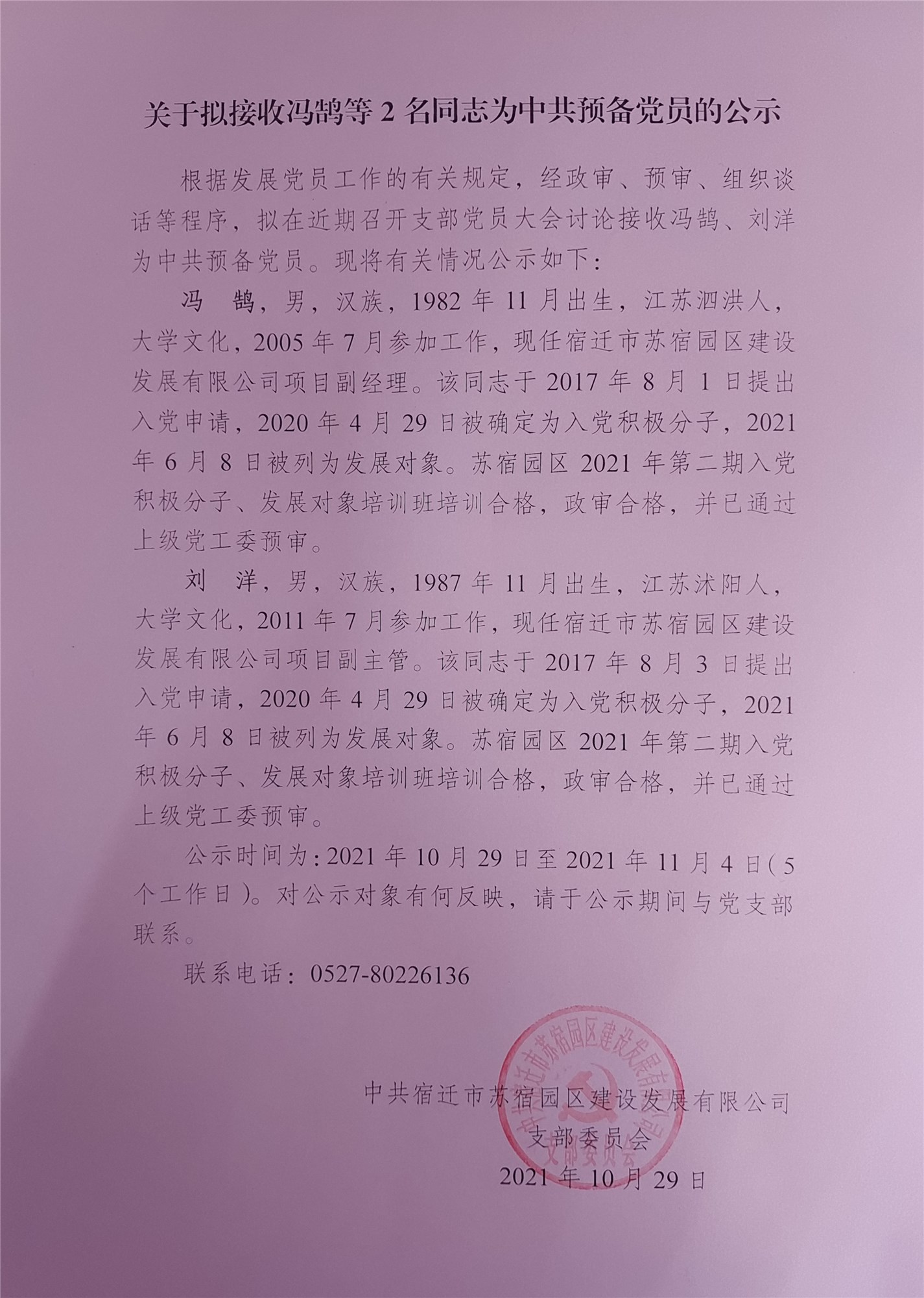 關(guān)于擬接收馮鵠等2名同志為中共預備黨員的公示