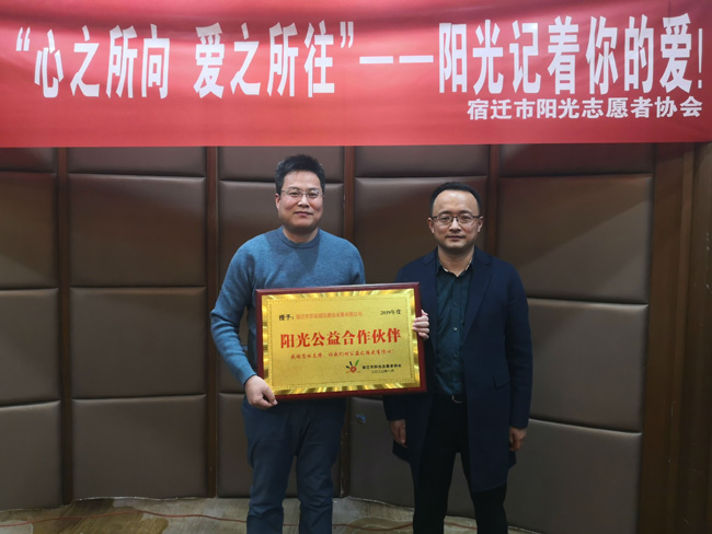 近日, 公司榮獲“宿遷市2019年度陽(yáng)光公益合作伙伴”殊榮。