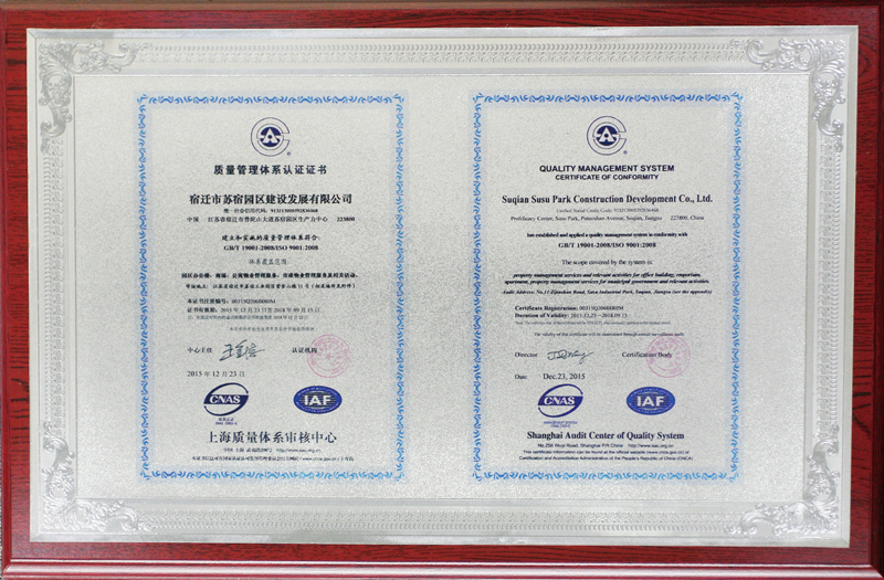 質(zhì)量管理體系認(rèn)證證書(shū)